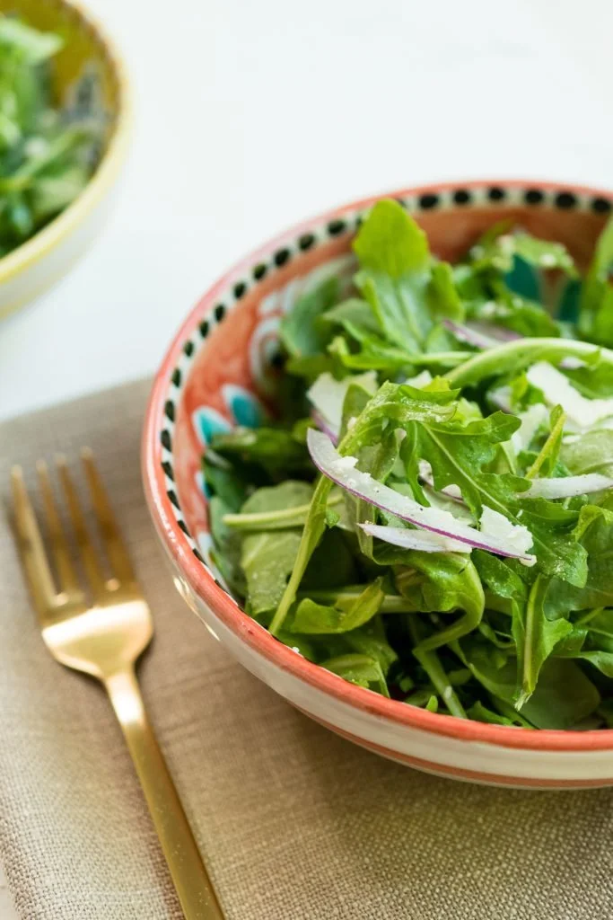 Simple Arugula and Parmesan Salad recipe featured by top US lifestyle blogger, Beth Chappo