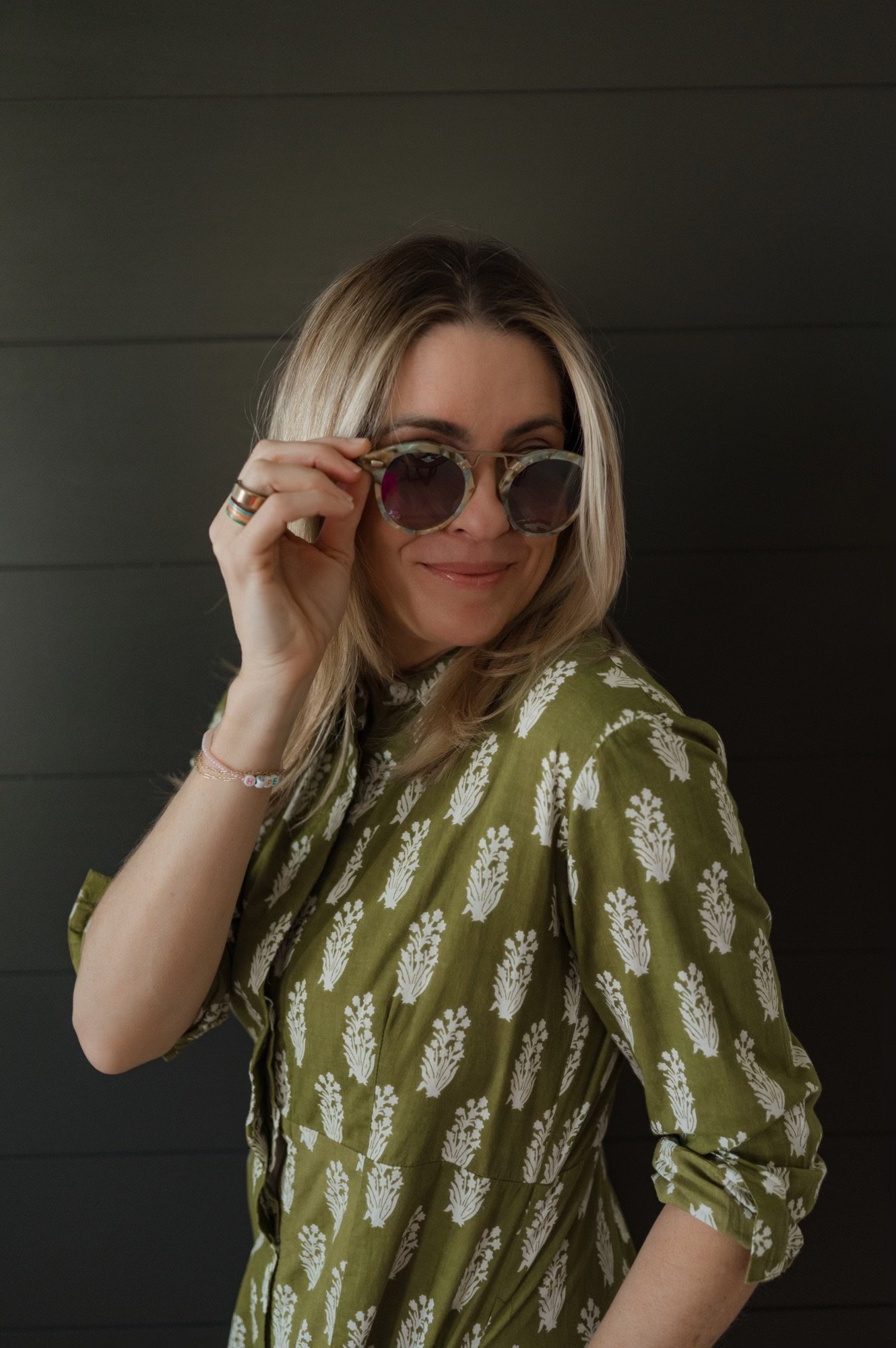 Last but certainly not least, I am wearing the Krewe STL II in the shade Pearlescent + Sweet Tea. These add such a fun pop of color to any outfit without being overpowering.