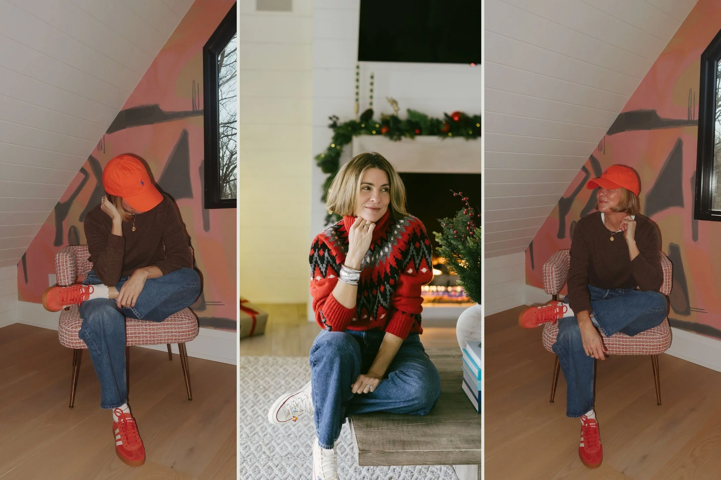 Think: sweaters, denim, sneaks, a ball cap, and when the temps call for it… a coat. It’s an easy, effortless combo that makes me feel equal parts pulled together and comfortable — which is non-negotiable this time of year.
