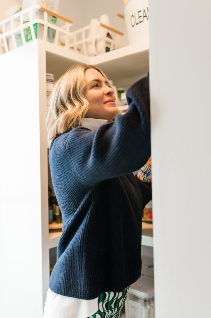 Who says the pantry can't be a little happy space? If the kitchen is the heart of the home, then its counterparts… the pantry… is equally as important. Kinda like my closet, if I know what’s in there and can see its contents, I’m more compelled and excited to cook creatively (create outfits, not shop). Spent the first couple weeks of the New Year purging, organizing, and shifting the crib…. I must say, this little space is just as functional as she is pretty… I was just chatting with Johnny last night that I think we’re gonna slap some (colorful) paint on her…..stay tuned! I learned from the best (pro organizer KEEP IT NEAT INDY) to take EVERYTHING OUT, group like with like, consolidate, check expiration dates, don’t forget meds, Color coordinate where applicable, tape instructions when needed under lids, label where you can, and get as much as you can OFF THE FLOOR.
