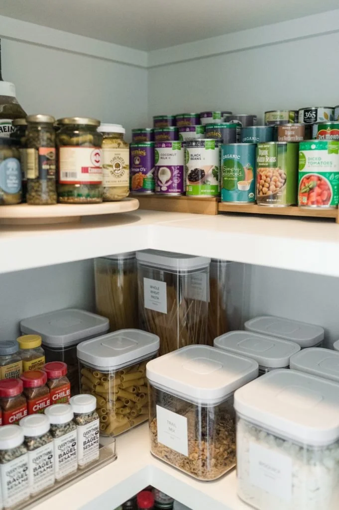 LABELS, BASKETS, DYSON HOLDER, CAN OPENER, CONTAINERS, CONTAINERS, AND MORE CONTAINERS.