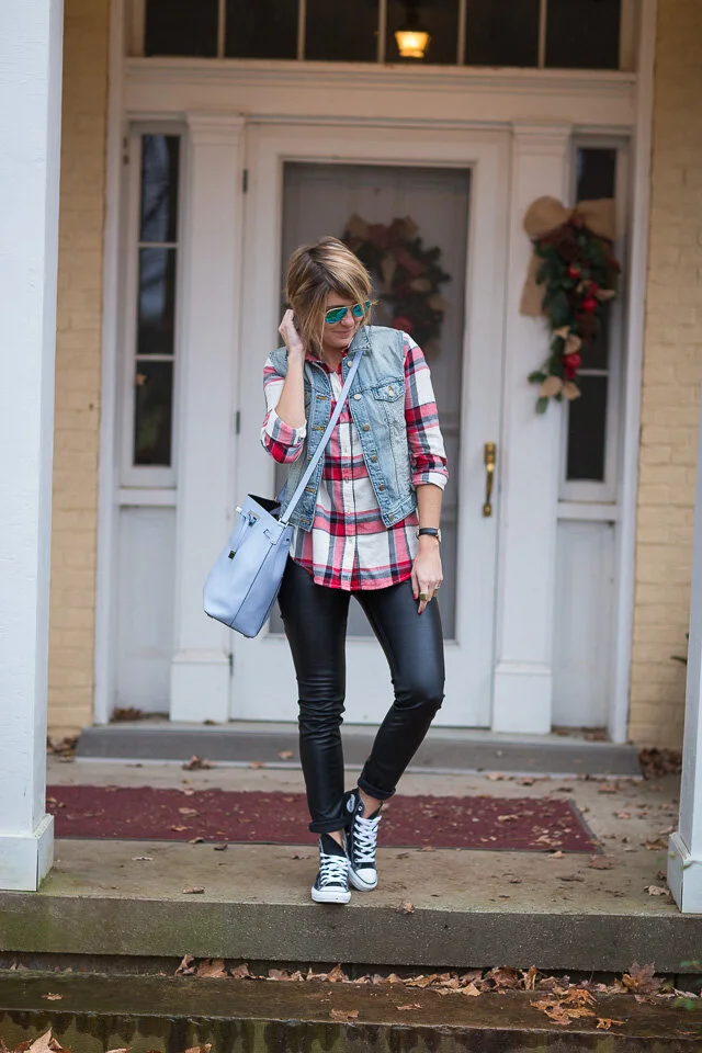Quite excited about today's post. First, because I am totally digging this combo of Plaid & Faux Leather from H & M. It's laid-back vibe is right up my alley as is the price point